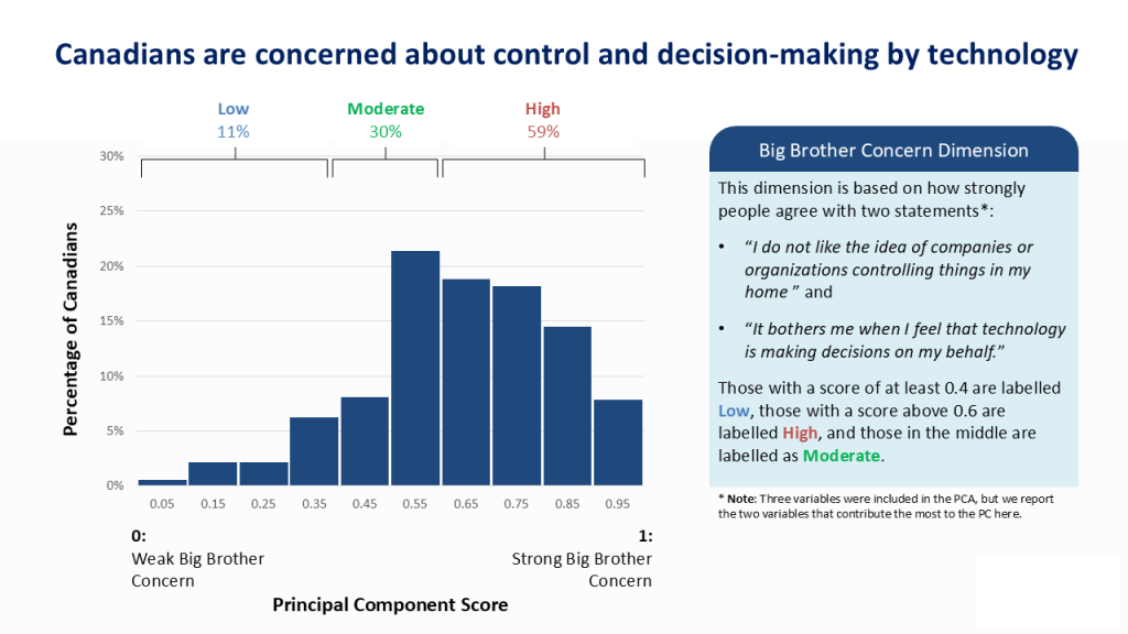 To understand these differences, we looked at key dimensions that shape attitudes toward the grid edge. Notably, Canadians cluster around a dimension we call the Big Brother Concern, which reflects how strongly people resist technology or companies making decisions on their behalf. This concern plays a major role in shaping who is cautious, who is enthusiastic, and who falls somewhere in between.